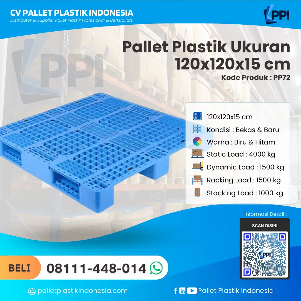 ![Pallet Plastik Baru & Bekas 120x120x15 [PP72]](https://palletplastikindonesia.com/wp-content/uploads/2026/02/Pallet-Plastik-Baru-Bekas-120x120x15-PP72.webp)